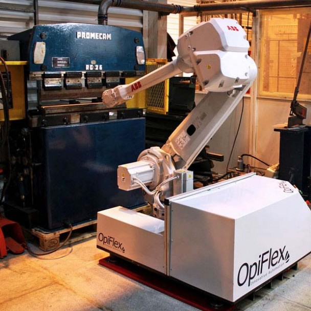 Mit OpiFlex lösen Sie die Herausforderung, die Produktion von kleinen Mengen mit hoher Variantenvielfalt zu automatisieren. Dies wird durch ein zaunloses, transportables und einfach zu programmierendes Robotersystem erreicht.