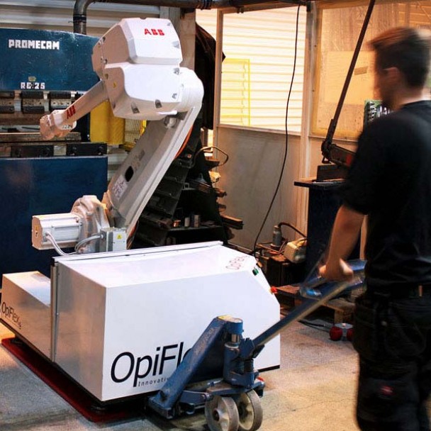 Mit OpiFlex lösen Sie die Herausforderung, die Produktion von kleinen Mengen mit hoher Variantenvielfalt zu automatisieren. Dies wird durch ein zaunloses, transportables und einfach zu programmierendes Robotersystem erreicht.