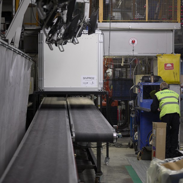 Unser V1-System wurde auf einer Produktionslinie bei Gestamp Hardtech installiert, während Mitbegründer Per einige Systemtests durchführt. Der V2 befindet sich im Bau und wird Anfang 2020 an Volvo Cars ausgeliefert.